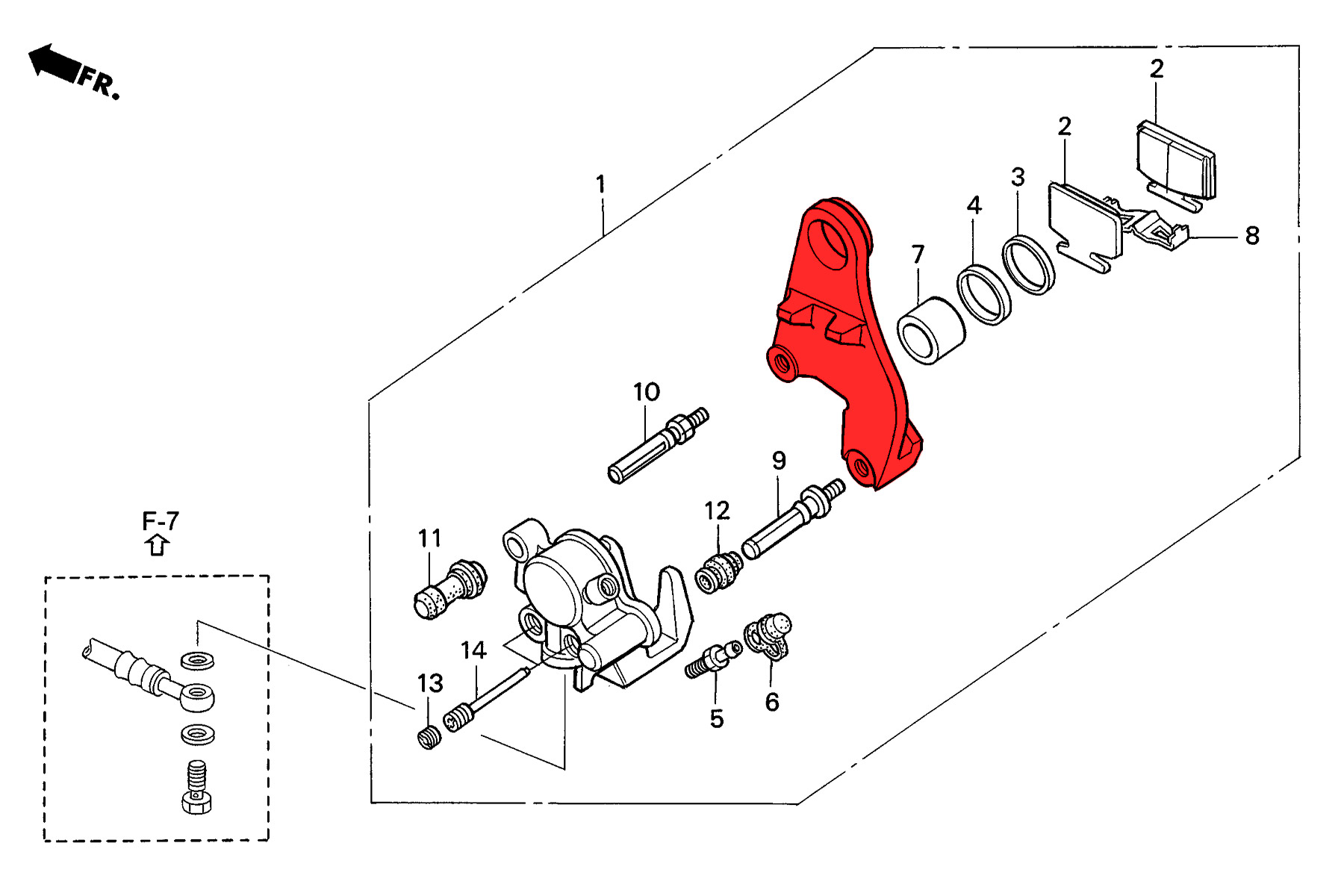 Bolt on replacement for the OEM rear brake caliper bracket